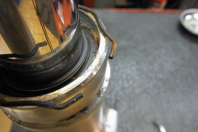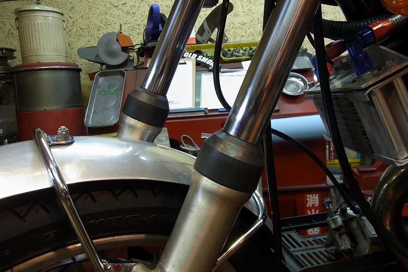 ほっておくとフロントフォークのオイル漏れの原因になります。