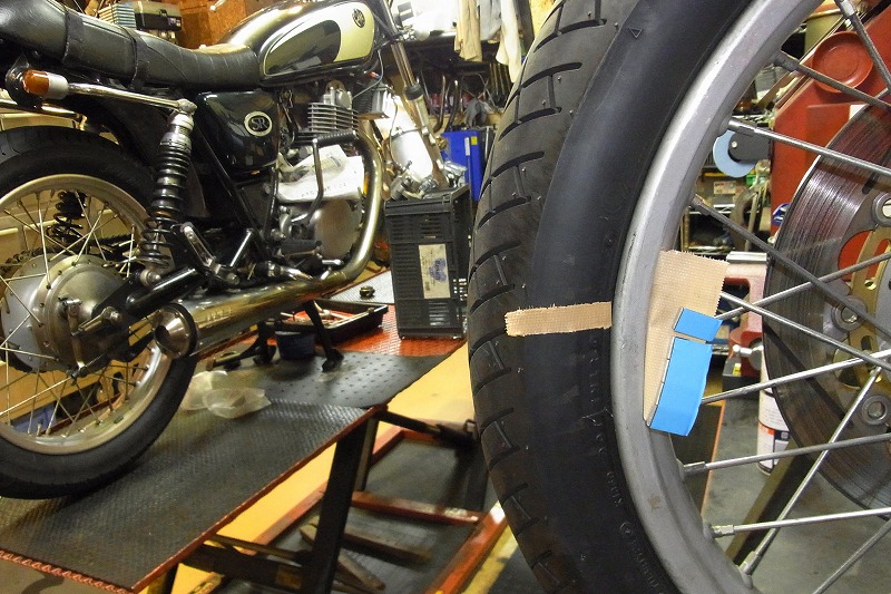 他店様で交換したフロントタイヤ、バランス取りをご希望されましたので。