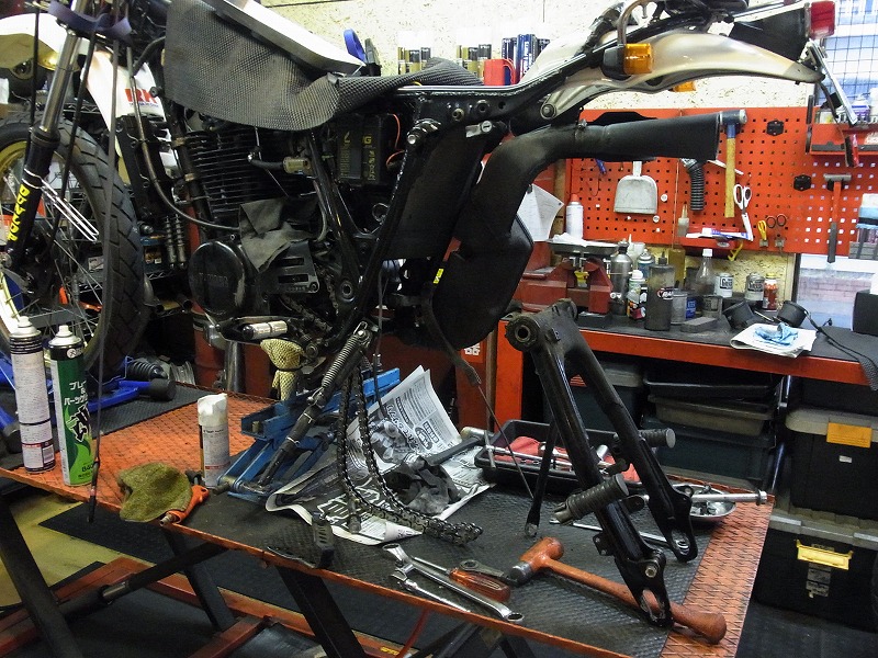 スイングアーム点検清掃&グリスアップ。