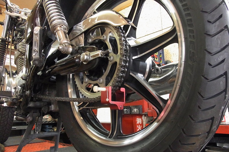 チェーン清掃&注油に始まり、リアブレーキ点検清掃&グリスアップ。