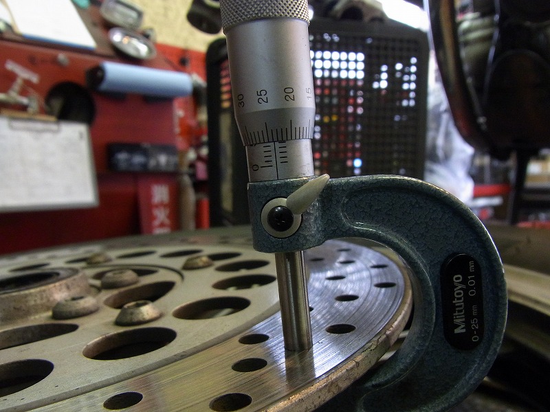 フロントホイール、ベアリングやブレーキローター厚を点検。
