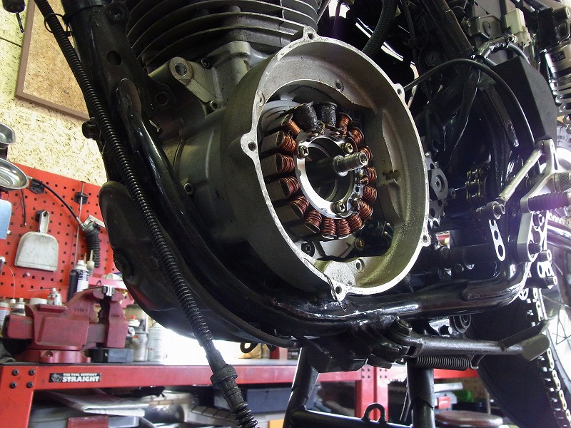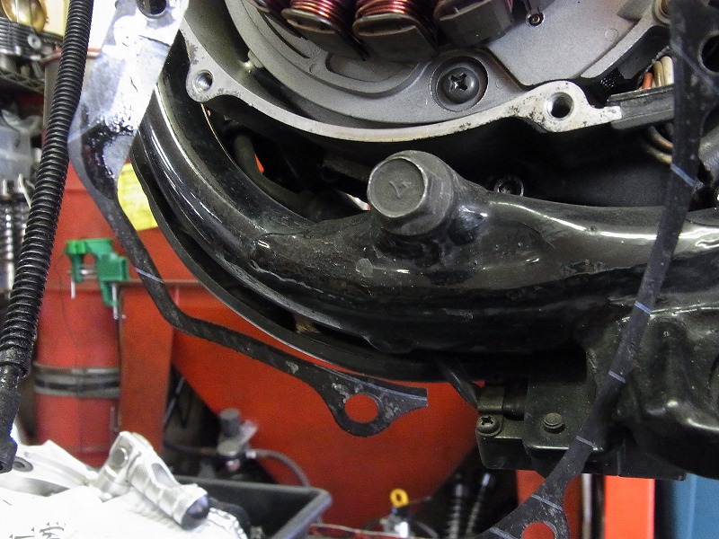 フライホイール側外れないとフライホイールケースが外せない。