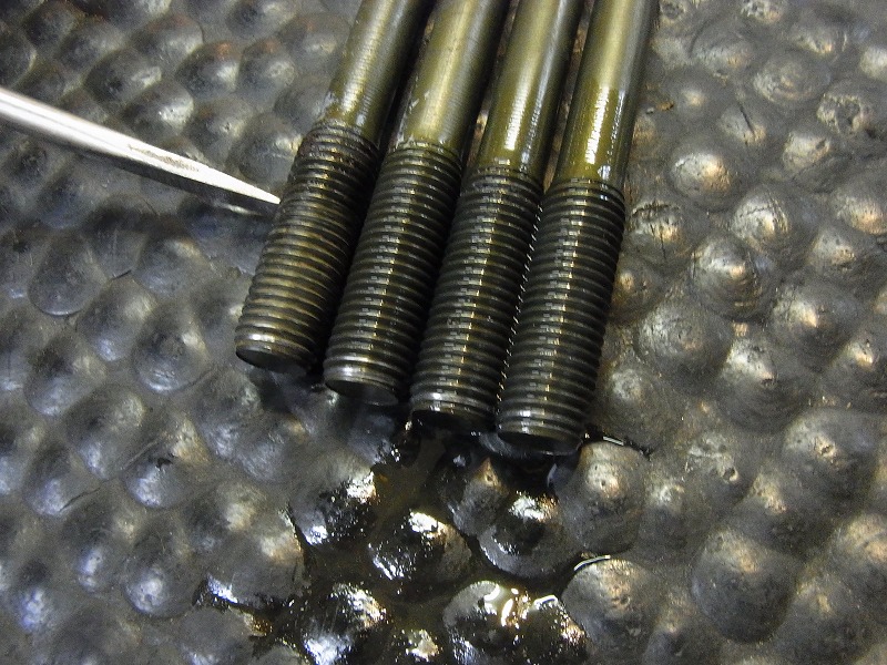 スタッドボルトのネジ山部にはスレッドコンパウンドを塗布して組んでおります。